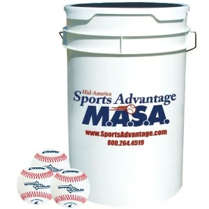 This Champro bucket contains 3 dozen CBB-200 Series practice baseballs. Moisture Barrier Technology, which will help prevent moisture from penetrating through the cover and into the yarn.